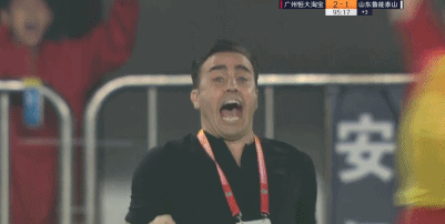 在上半时结束前佩莱利用任意球头槌扳平比分之后,李霄鹏的表情松了一口气,而另一厢,主场被鲁能追平的卡纳瓦罗,看上去神态也十分放松。两队球迷各唱各的应援歌,看台上一团和睦的气氛。