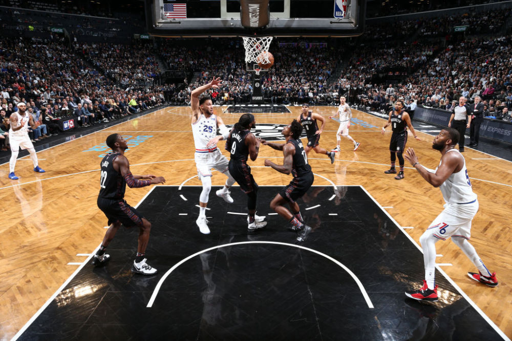 西蒙斯的投篮依旧是他的软肋,但是布朗却利用西蒙斯擅长打防守反击的特点为其设立了战术。在第三场比赛,西蒙斯全场有13次出手,大多数都是来自于防守反击中的上篮,而当篮网采取半场所受防守时,西蒙斯也开始用助攻来引领球队的进攻,雷迪克和哈里斯在第三节三分线外的暴走,正是在西蒙斯的策动下完成的。同时西蒙斯也注意了与队友之间的配合,他屡次借助挡拆为自己获得了空位上篮的机会,这一点让篮网防不胜防。