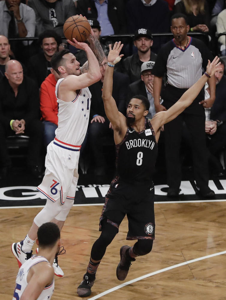 虽然76人内线拥有恩比德这样的“大杀器”,但是三分球依然是76人的“生死线”,在所有参加季后赛的球队中,只有马刺每百回合的三分球出手数少于76人。首场比赛76人全场只投中3记三分球,导致球队输球,而第二场和第三场,76人的三分球分别为9记和11记,正是凭借着三分球,76人才没有被篮网追上比分。哈里斯的到来让雷迪克在三分线上的压力得到减轻,而他们两人的组合也成为了76人在季后赛的新型进攻武器。