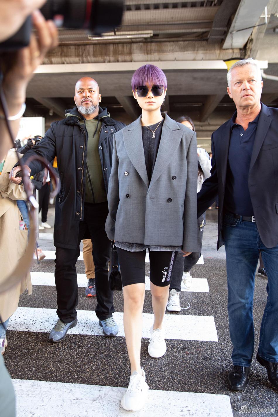 其实春春今天早上才抵达戛纳,一早的机场look也是非常帅气,换了新发色的春春,身穿MM6 Masion Margiela西服及Alexander Wang骑行裤,搭配Gucci Zumi肩背包,佩戴的珠宝腕表均来自Gucci,久违的西装葱上线。