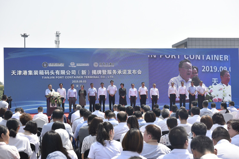 这是9月3日拍摄的天津港集装箱码头有限公司(新)揭牌仪式现场。
