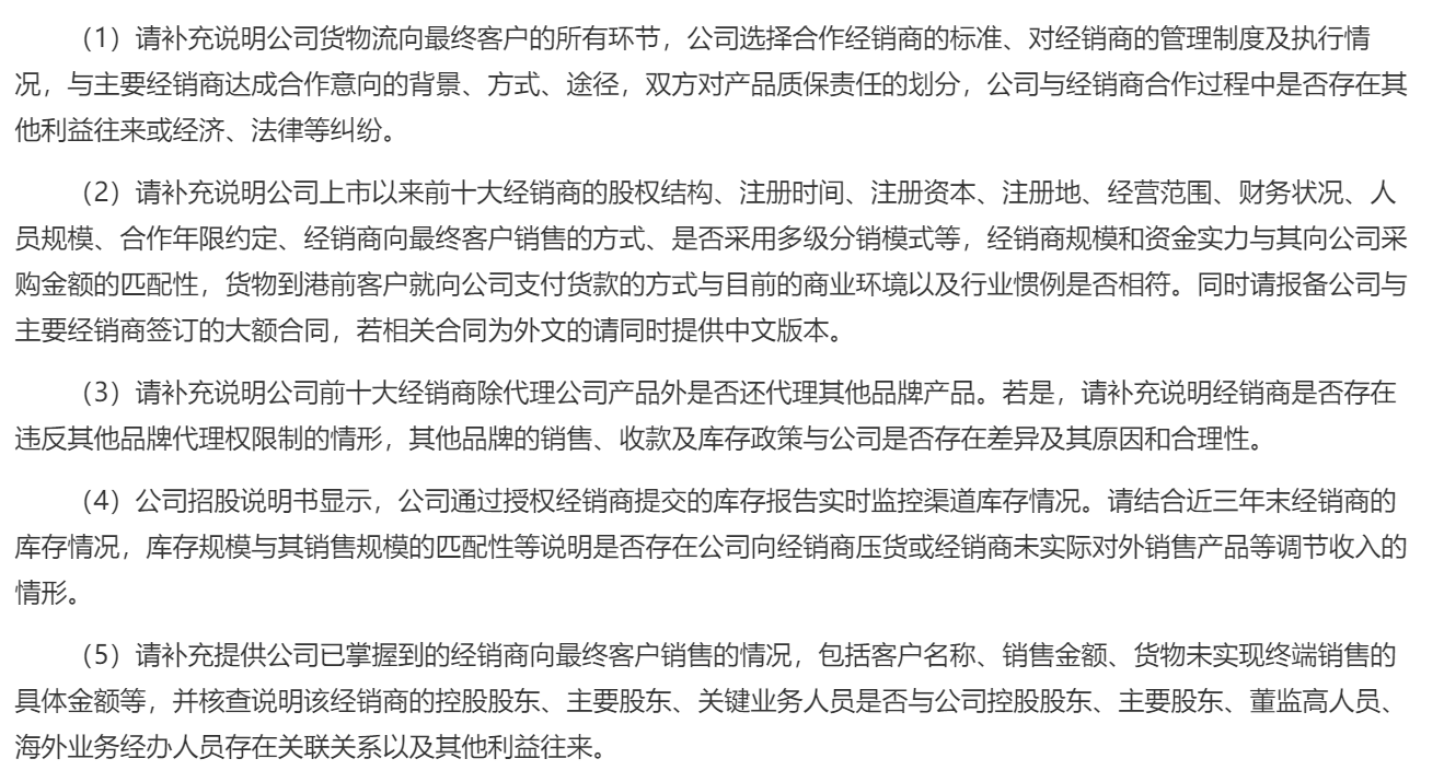 但深交所指出,部分经销商注册资本较小,且部分经销商成立当年或成立不久就成为公司主要客户,还有部分客户公开资料显示历史上存在亏损情形等。同时,公司的各区域经销商存在销量与销售金额不匹配的情形。