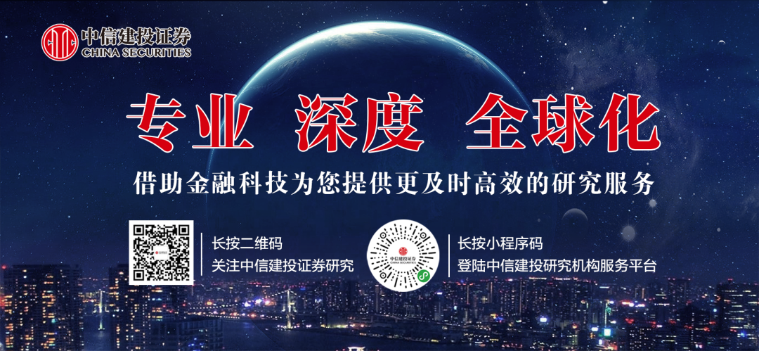 重要提示:通过本订阅号发布的观点和信息仅供中信建投证券股份有限公司客户中符合《证券期货投资者适当性管理办法》规定的机构类专业投资者参考。因本订阅号暂时无法设置访问限制,若您并非中信建投客户中的机构类专业投资者,为控制投资风险,请您请取消关注,请勿订阅、接收或使用本订阅号中的任何信息。对由此给您造成的不便表示诚挚歉意,感谢您的理解与配合!